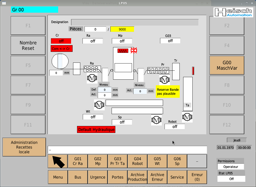 :T: " changeent de la recepture pas posible, machine courant"