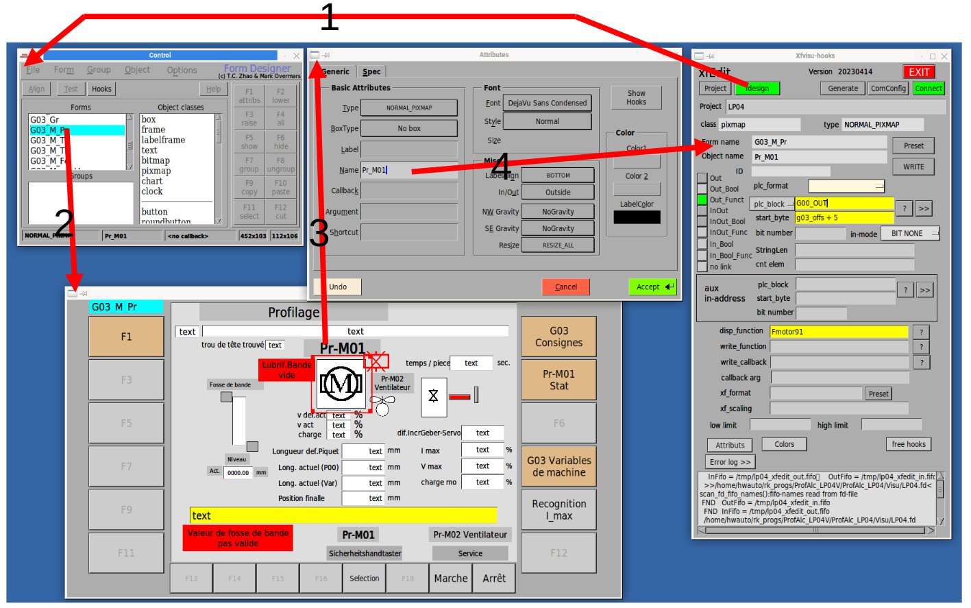 Die 'Hooks'-Inhalte werden in xfEdit editiert und mit 'Write' an fdesign zurück übertragen.